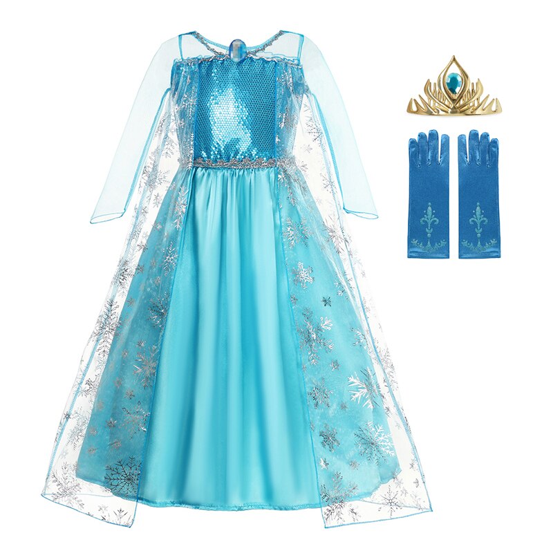 Disney 2022 Snow Queen Elsa Princess Costume Girls Halloween Party Frozen Elsa Dress Up Clothing Kids Sequins Dresses Vestidos