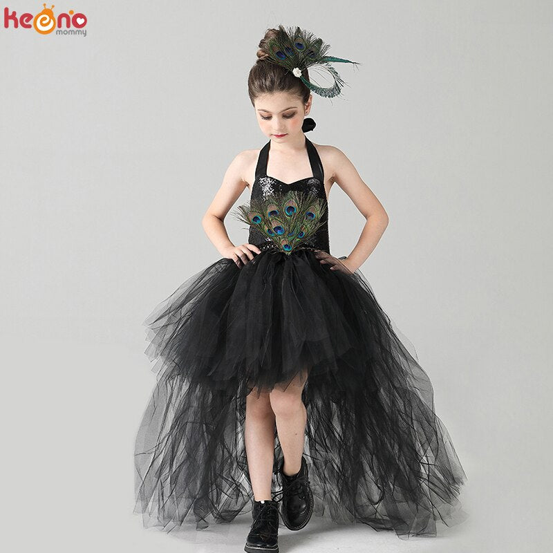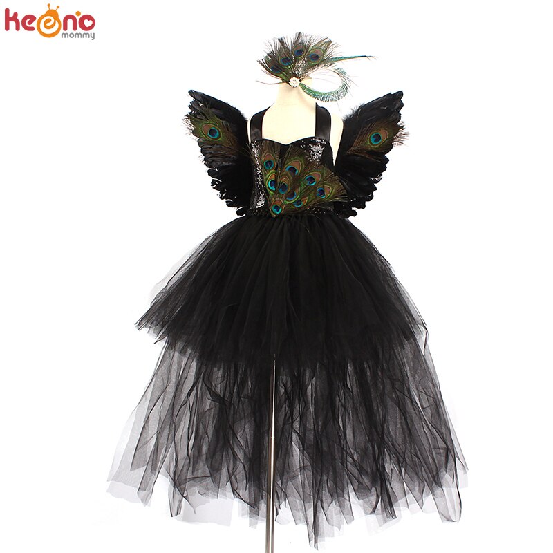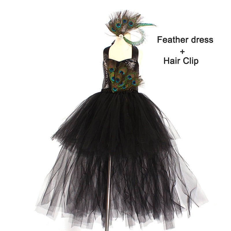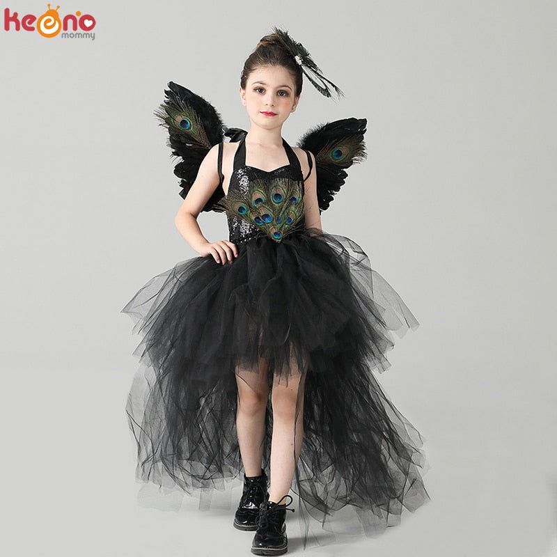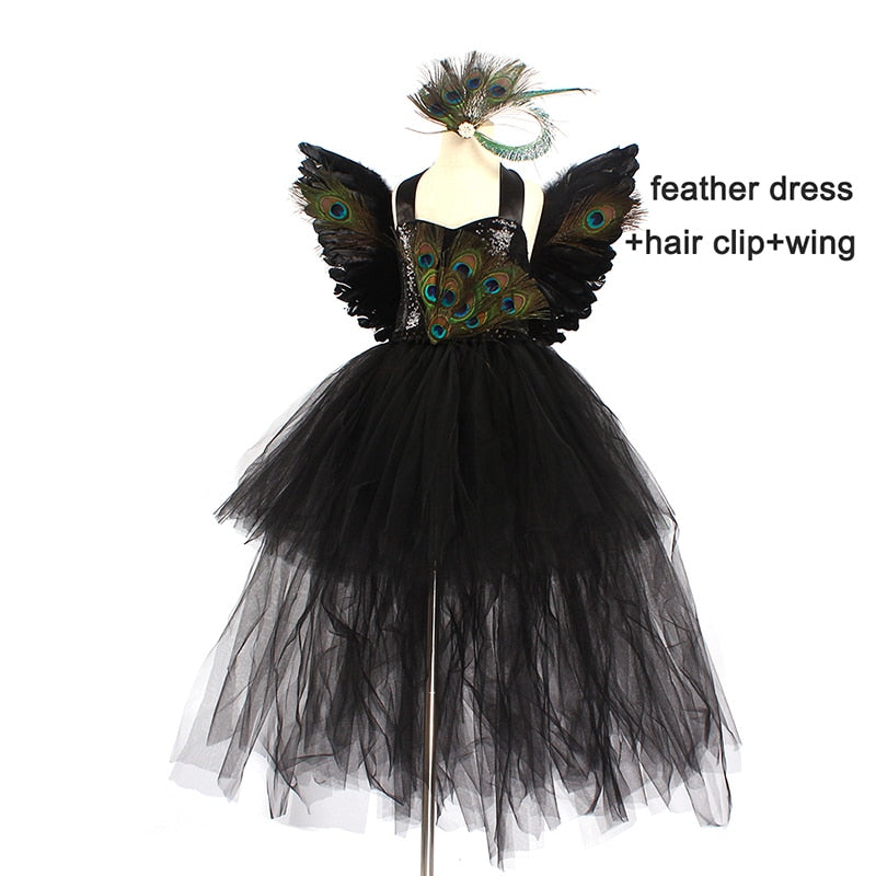 Fancy Peacock Feather Girl Pageant Tutu Dress with Wing Kids Deluxe Peacock Tutu Costume Dress Evening Party Halloween Clothes