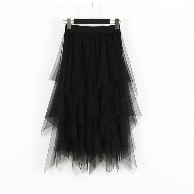 Fashion 2022 Spring Party Skirt Elastic High Waist Long Tulle Skirt Women Irregular Hem Mesh Tutu Skirt Ladies