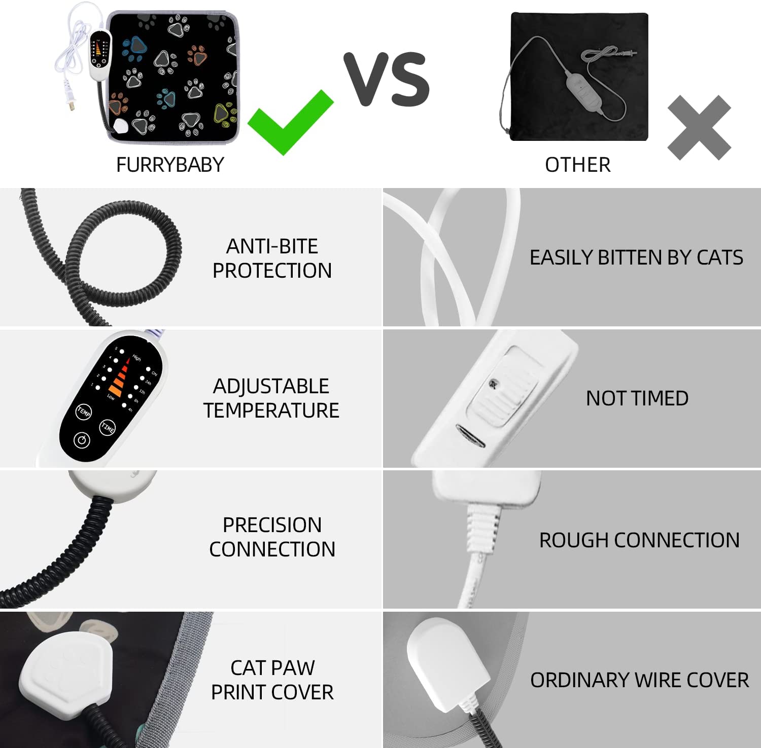 Furrybaby Dog Bed Warm Mats Pet Electric Heating Pad Blanket Pet Mat Bed Cat Dog Winter Warmer Pad Home Office Chair Heated Mat