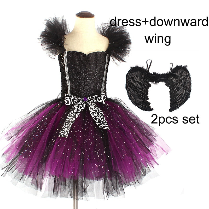 costume for kids: Girls Evil Dark Fairy Witch Tutu Dress