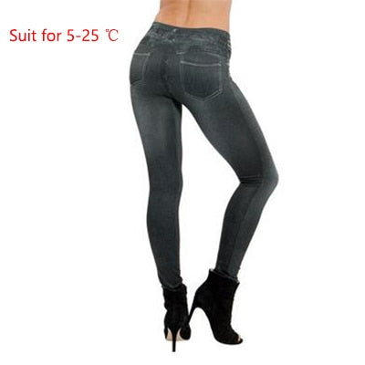 Gtpdpllt S-XXL Sexy Leggings Women Lined Spring Autumn Print Jeans Sportwear Slim Jeggings Two Real Pockets Woman Fitness Pants