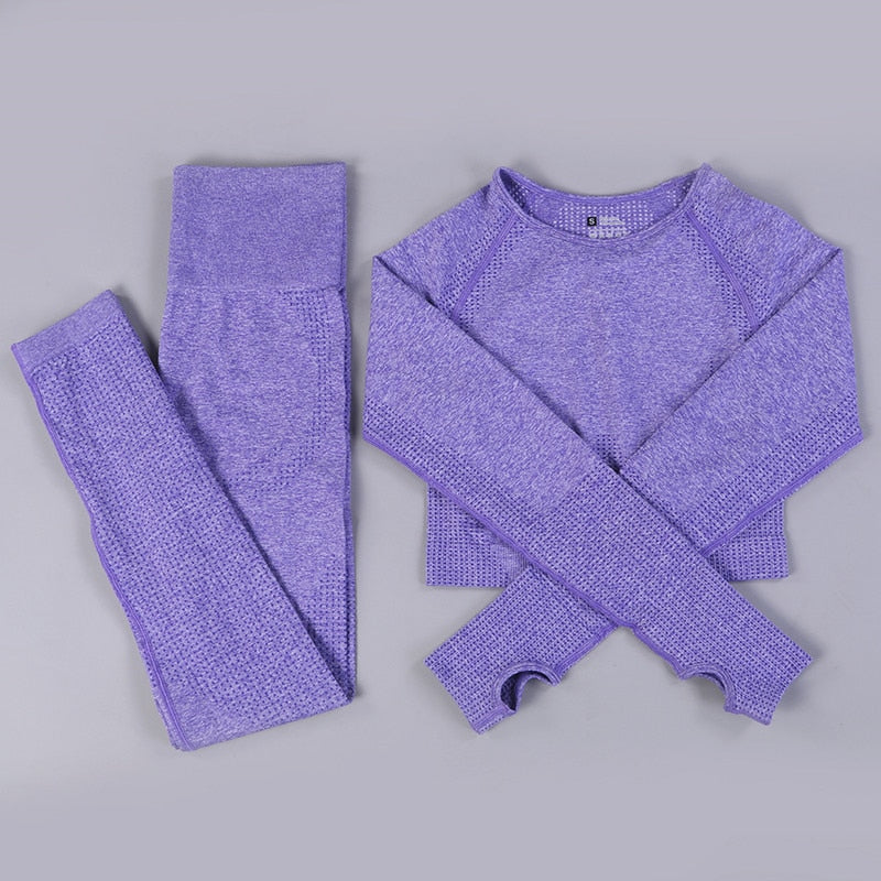 GYMS 2/3PCS Seamless Women Yoga Set Workout Sportswear Gym Clothing Fitness Long Sleeve Crop Top High Waist Leggings Sports Suit