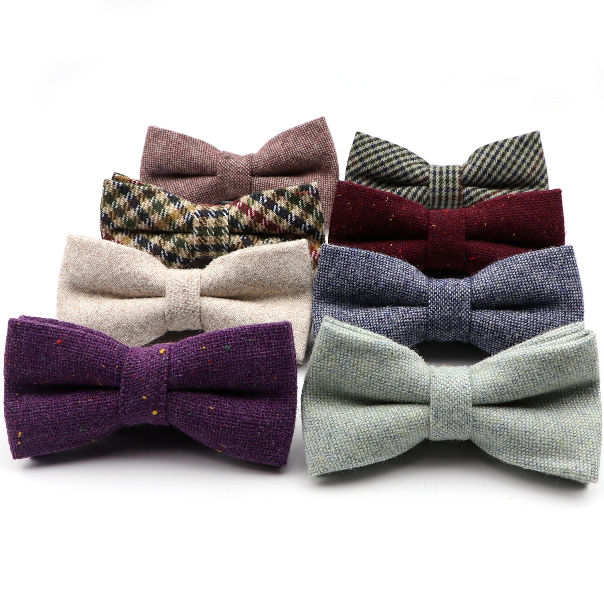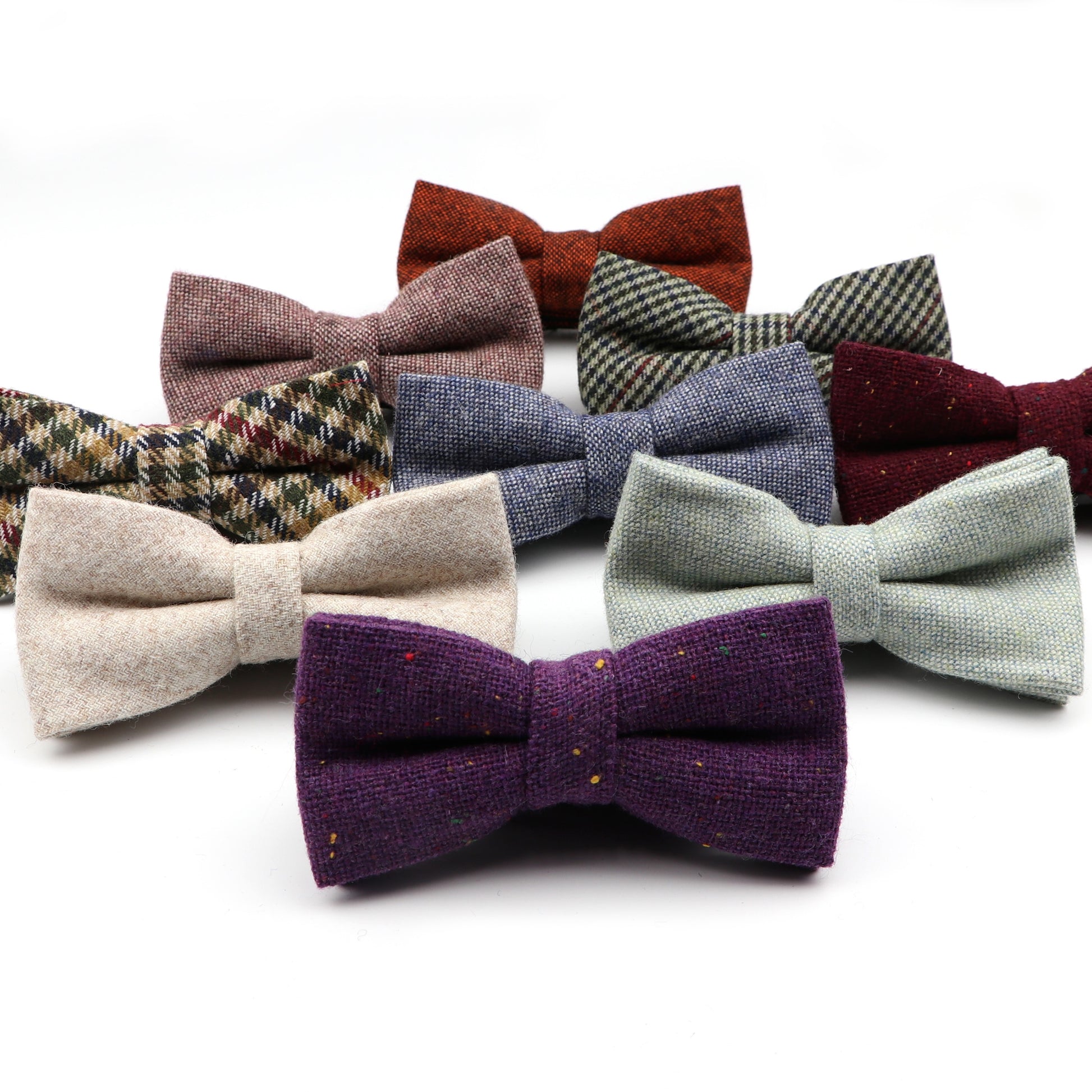 High Quality Men's Wool Cotton Bow Tie For Men Wedding Business Butterfly Solid Plaid Bowtie England Cravat Clothing Accessories