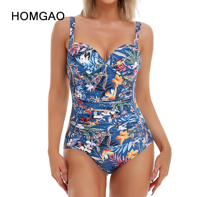 HOMGAO Sexy Push Up Women's One Piece Swimsuits Large Size Shirred Swimwear Vintage Bodysuit Tummy Control Bathing Suits L-4XL