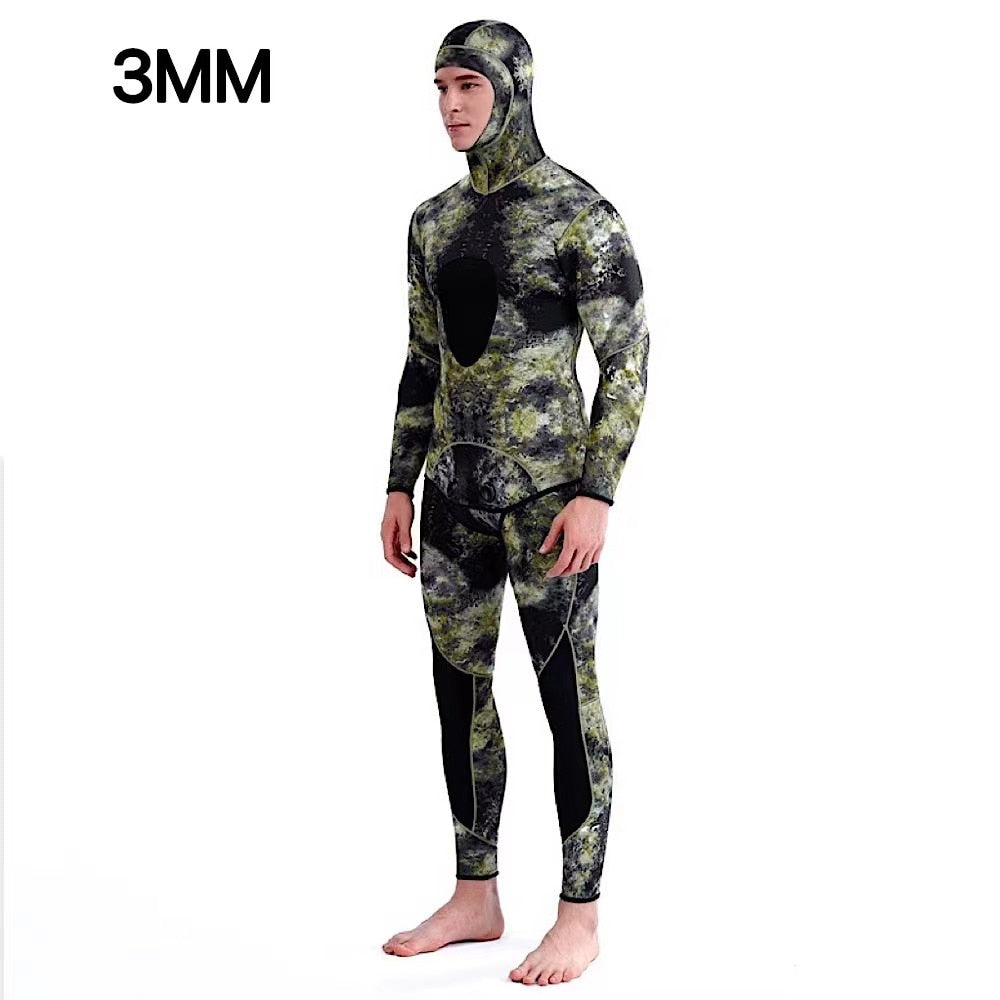 HOT 3mm Camouflage Wetsuit Long Sleeve Fission Hooded 2 Pieces Of Neoprene Submersible For Men Keep Warm Waterproof Diving Suit