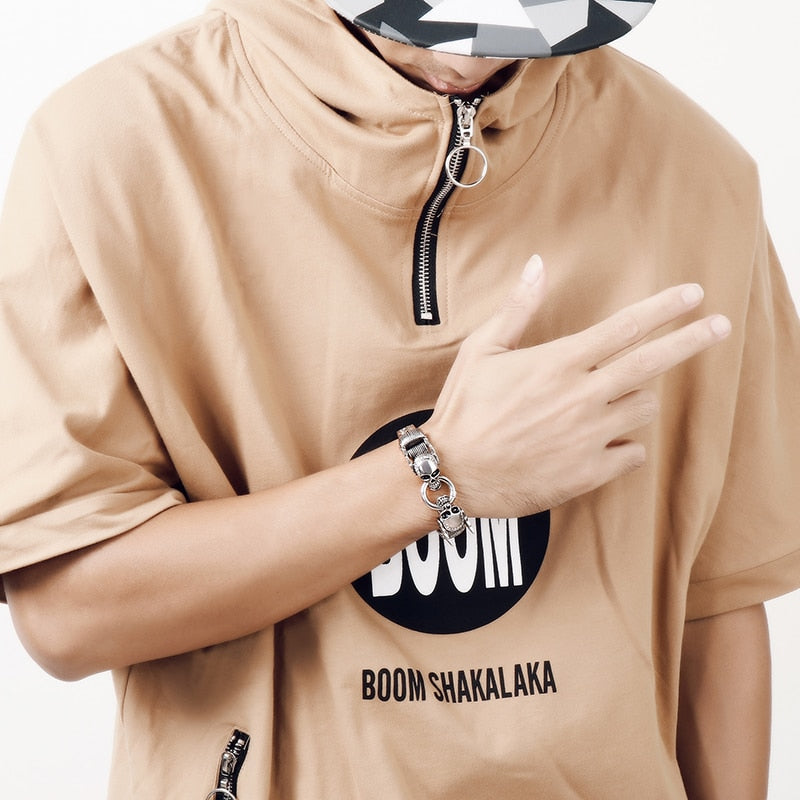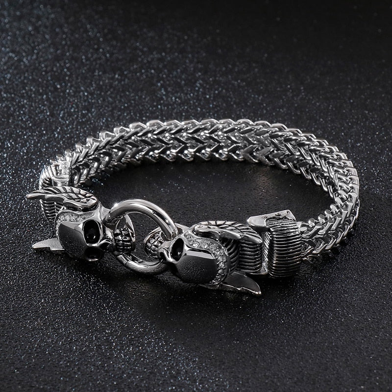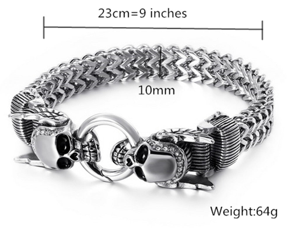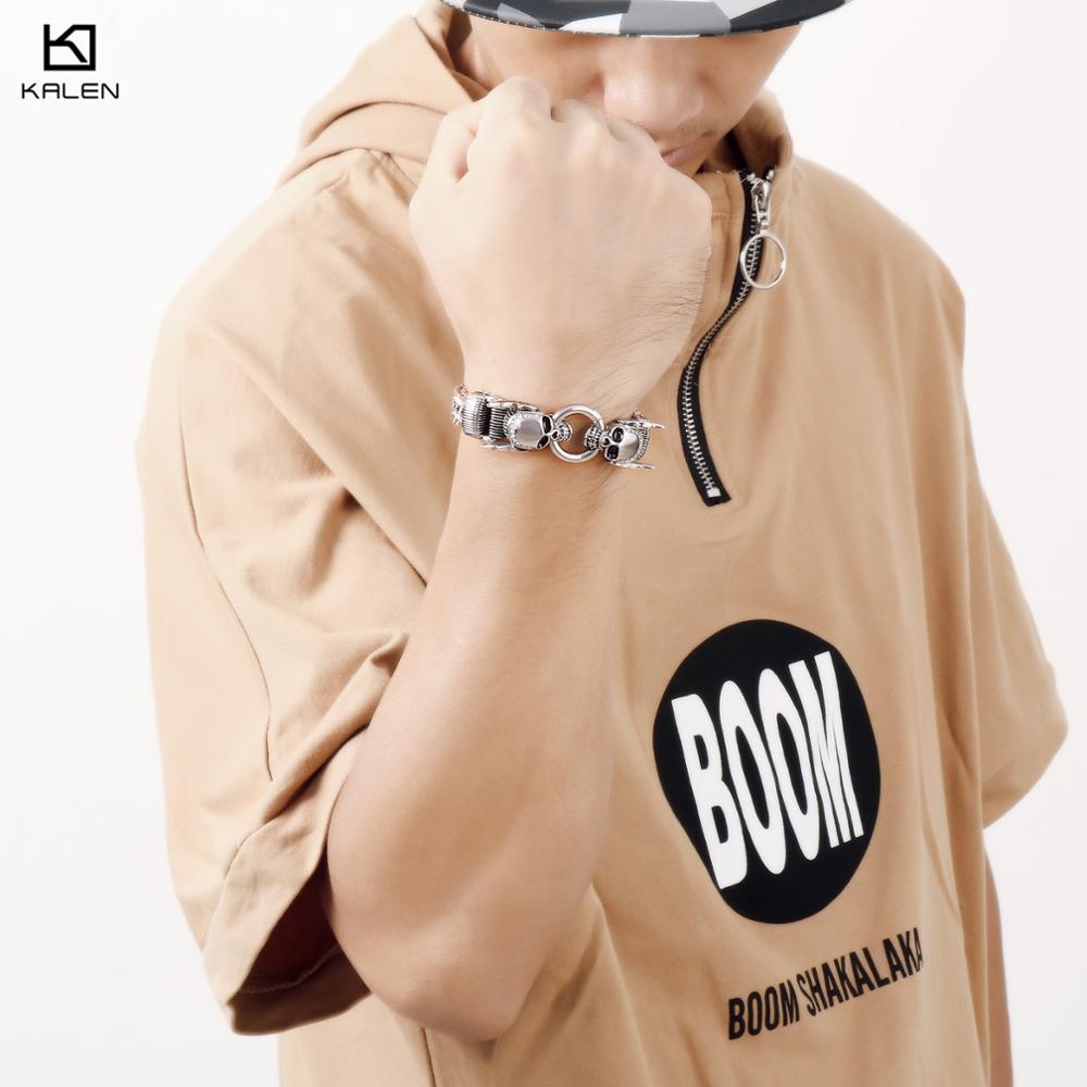 Kalen Gothic Halloween 23cm Chunky Mesh Chain Bracelet For Men Punk Skull Charm Bracelet Stainless Steel Skeleton Accessories J