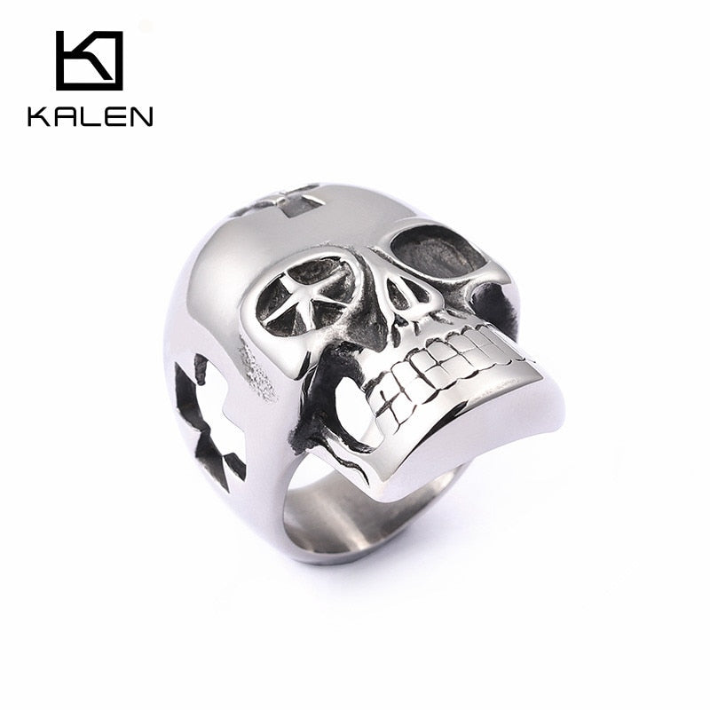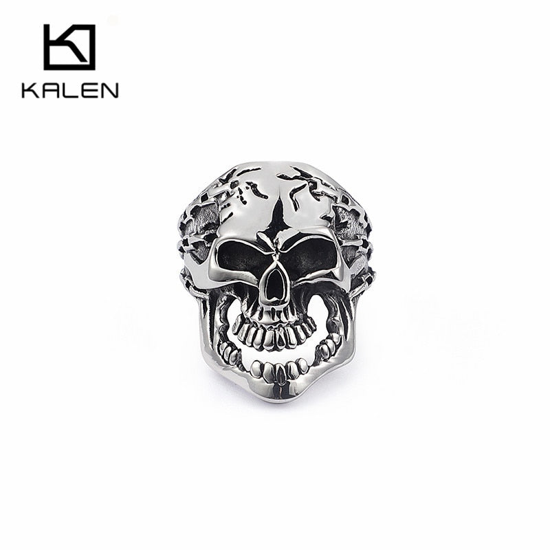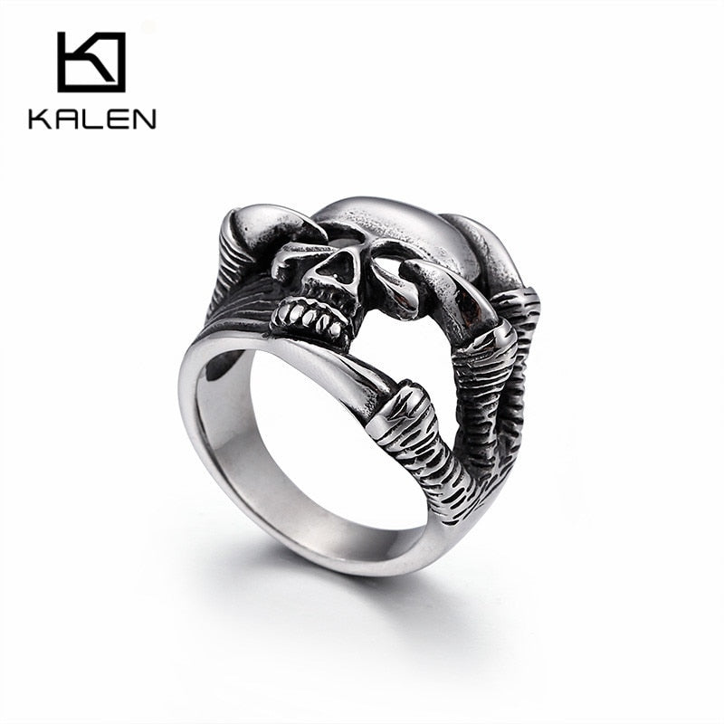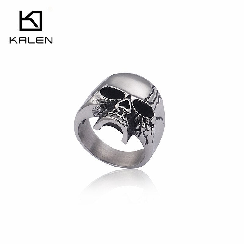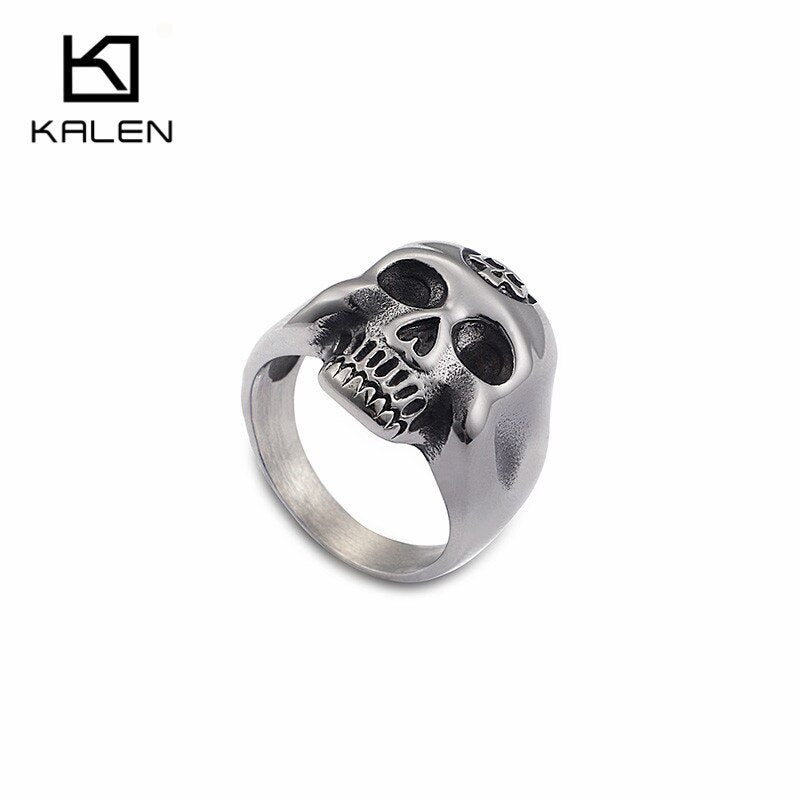 KALEN Punk Skull Rings For Men Size #8-12 Stainless Steel Gothic Skull Biker Rings High Quality Halloween Jewelry