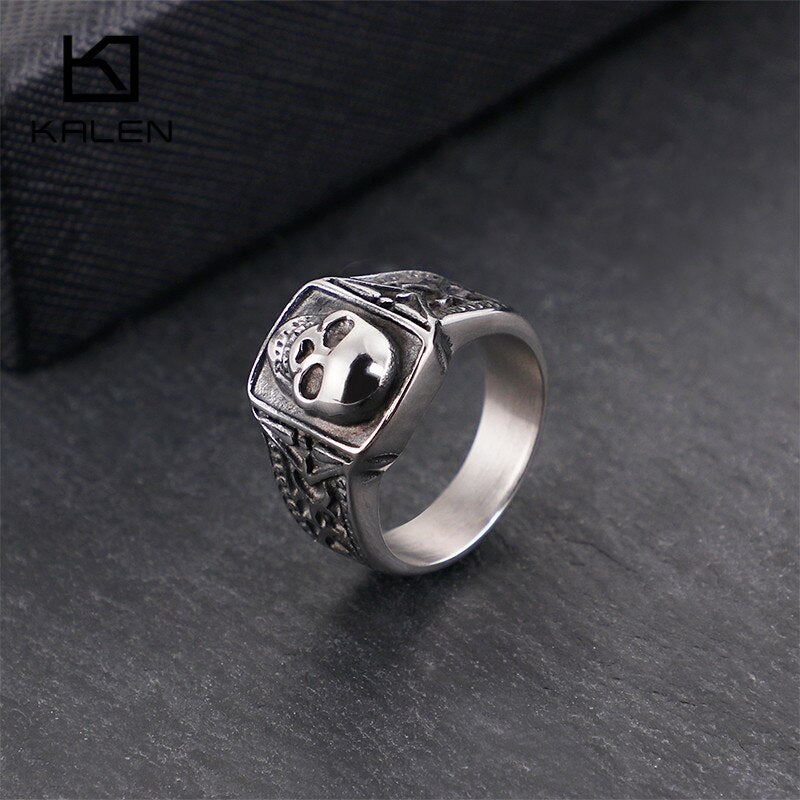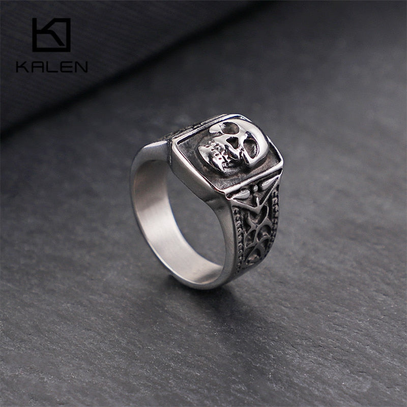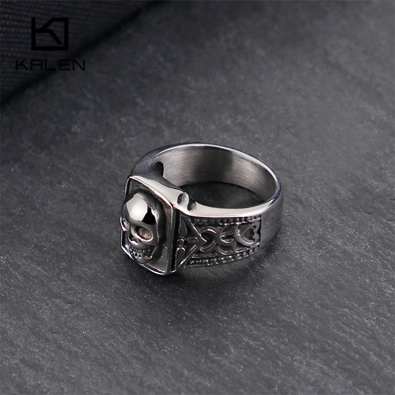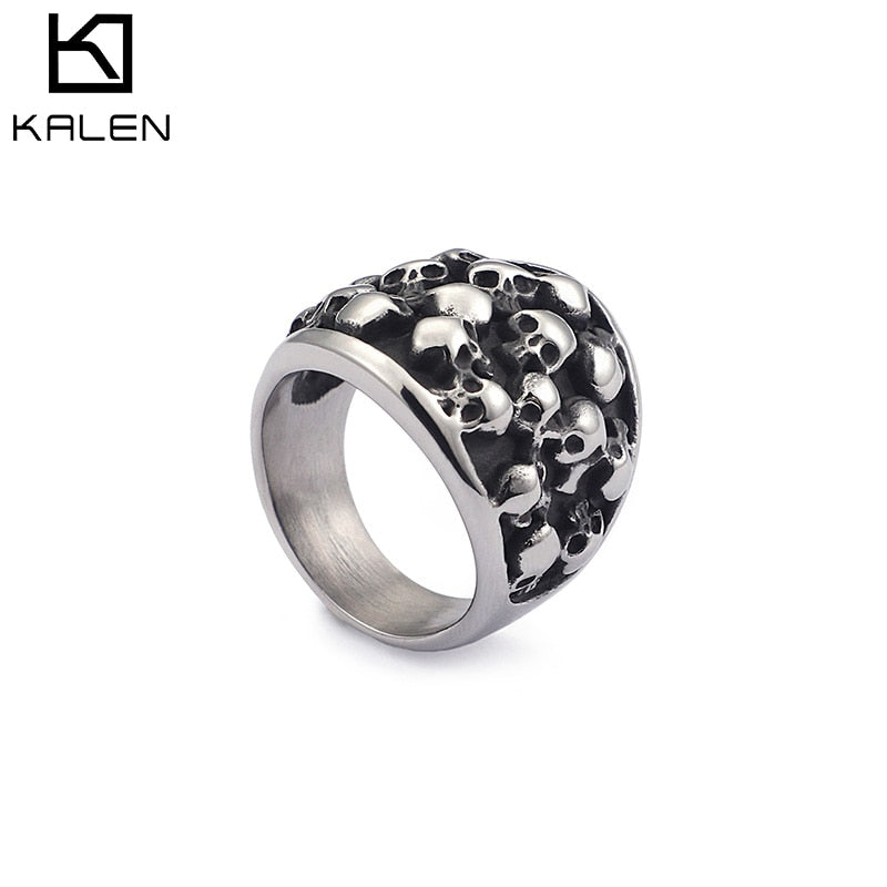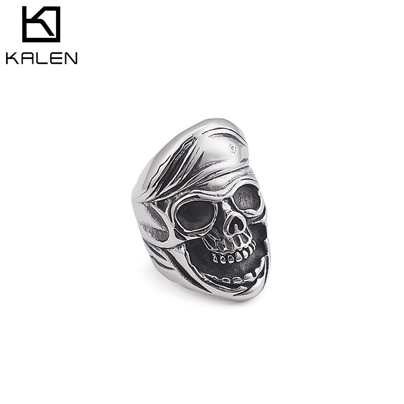KALEN Punk Skull Rings For Men Size #8-12 Stainless Steel Gothic Skull Biker Rings High Quality Halloween Jewelry