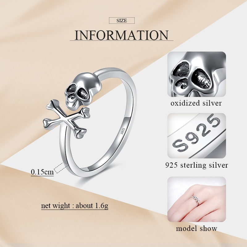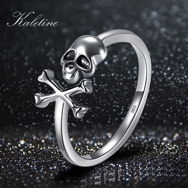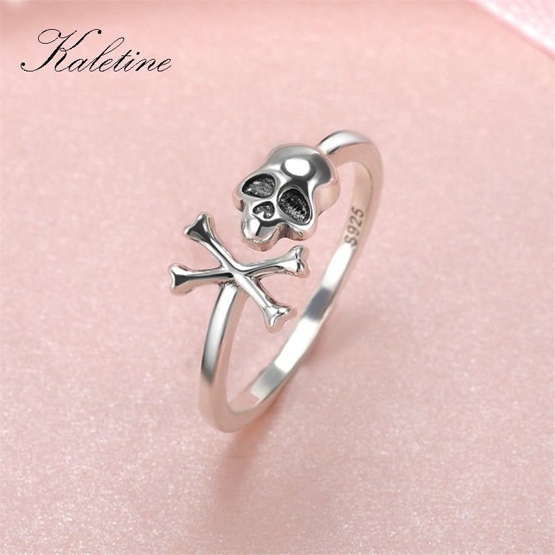 KALETINE 925 Sterling Silver Skull Ring Skeleton for Women Gothic Skeleton Rings Vintage Oxidized Silver Jewelry Halloween Gift