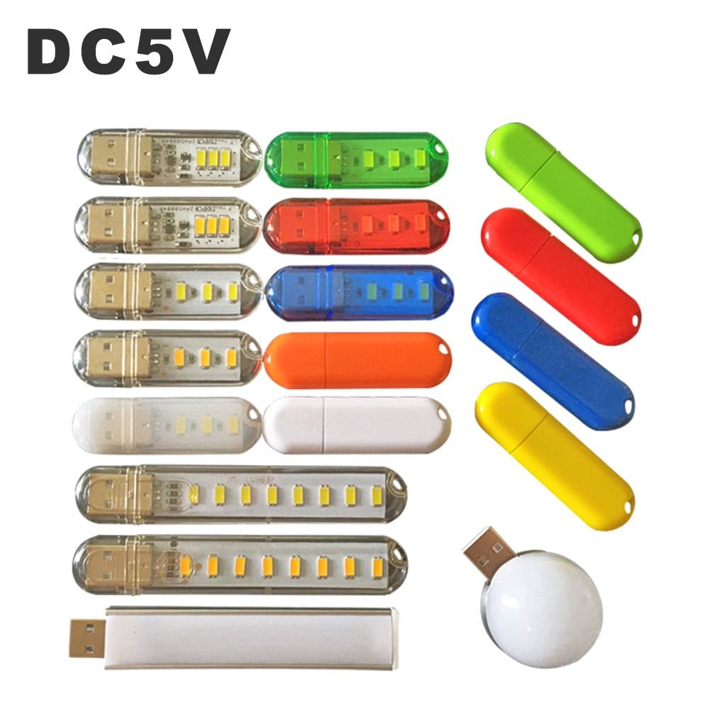LED USB Night Light Portable U Disk Lamp 3LEDs 1.5W Reading Lamps Colorful Mini Book Lights DC5V Power Bank Powered Camping Bulb