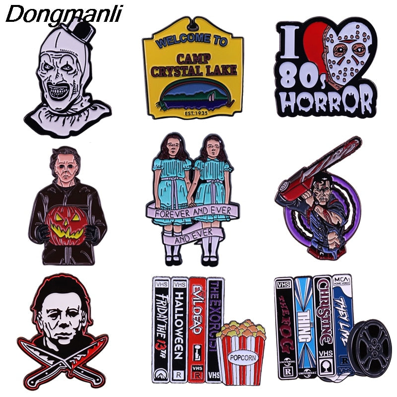 LT121 Halloween Horror Movie Enamel Pins Brooches Woman Men Backpack Bags Badge Lapel Jewelry Kids Friends Birthday Gifts