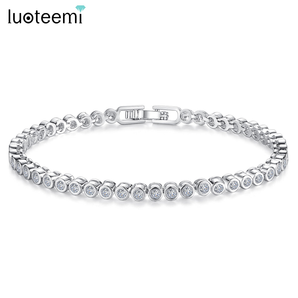 LUOTEEMI Brand Hot Selling Women Tennis Bracelet Luxury Round Clear CZ Beads Tennis Bangles for Men bijoux femme Unusual Jewelry