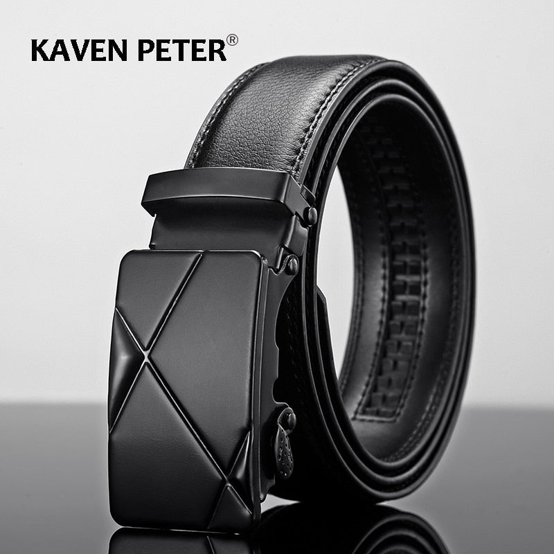 Men Leather Belt Metal Automatic Buckle Brand High Quality Luxury Belts for Men Famous Work Business Black Cowskin PU Strap