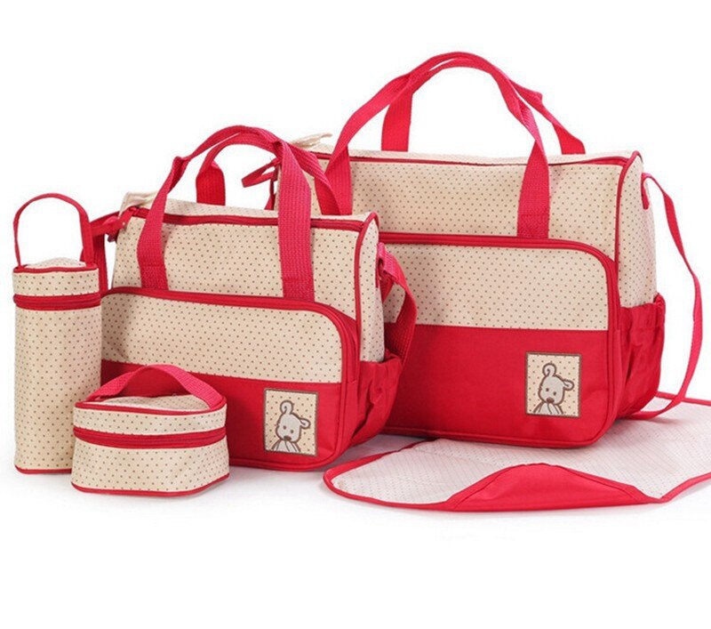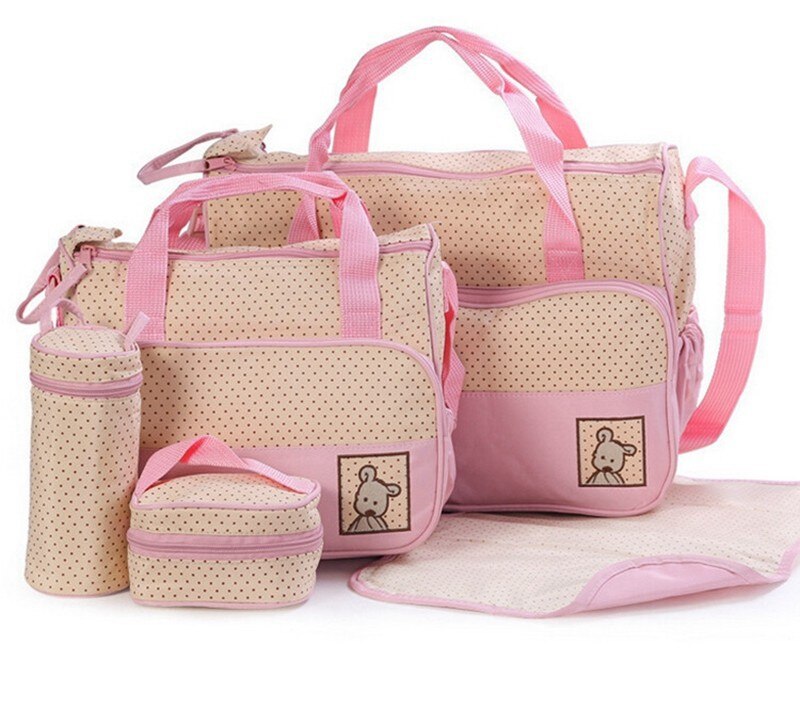 MOTOHOOD 39*28.5*17CM 5pcs Baby Diaper Bag Suits For Mom Baby Bottle Holder Mother Mummy Stroller Maternity Nappy Bags Sets