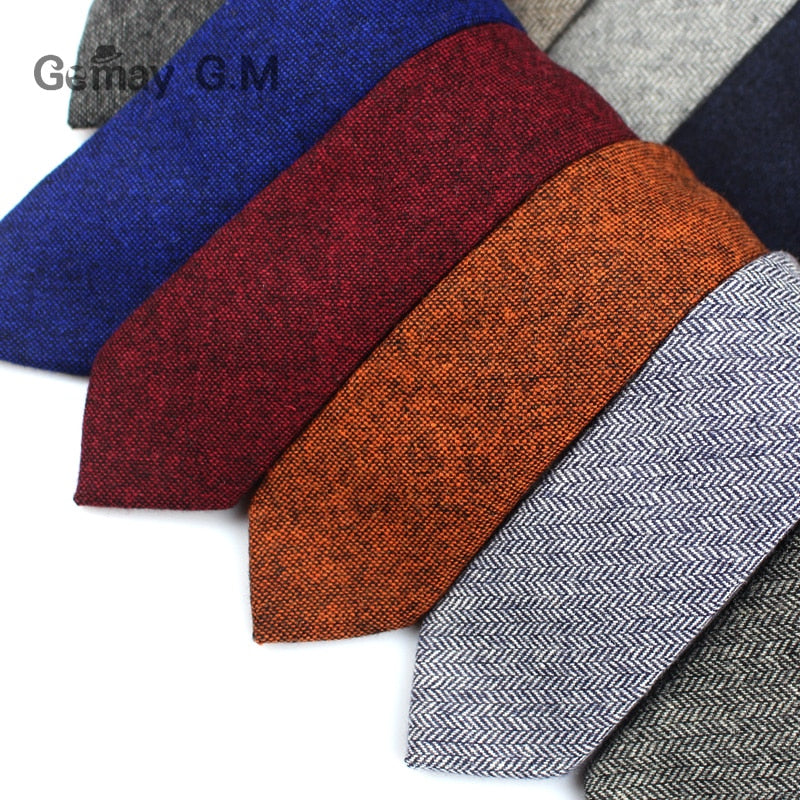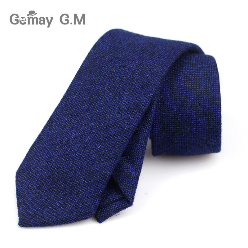 New Solid Wool Ties For Men High Quality Brand Narrow Slim Suits Neckties Blue 6cm Mens Neck Tie for Wedding Cravats