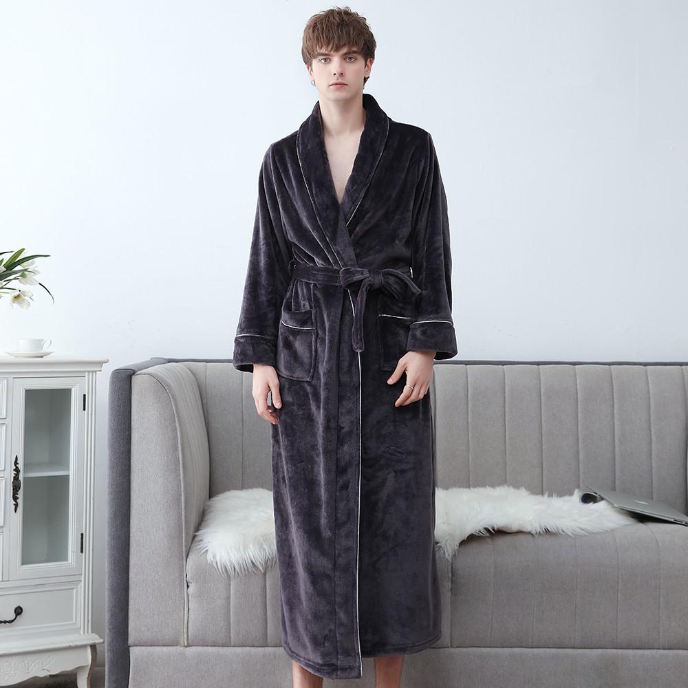Plus Size 3XL Men Robe Winter Flannel Soft Kimono Gown Lovers Ultra Large Long Bathrobe Nightwear Thick Warm Women Sleepwear