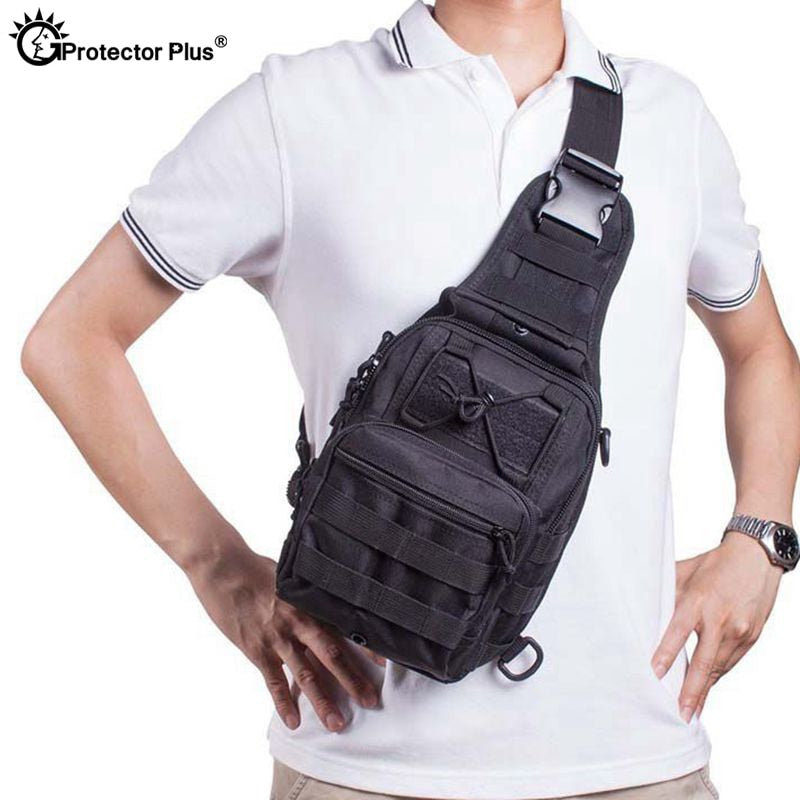 PROTECTOR PLUS Outdoor Tactical Military Crossbody Bag Sling Shoulder Chest Pack Men Camo Army Travel Hiking Camping Sport Bag
